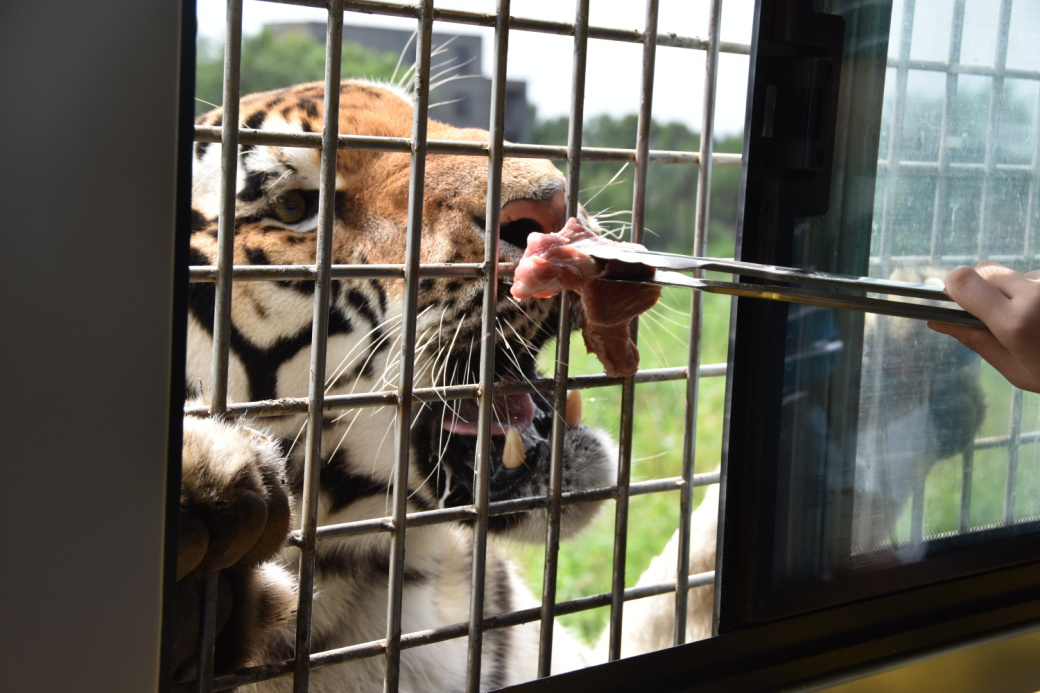 瞧瞧這鋒利的牙齒。據(jù)說一只成年老虎一天可以吃掉60斤肉食,老虎的食量也是夠驚人的!