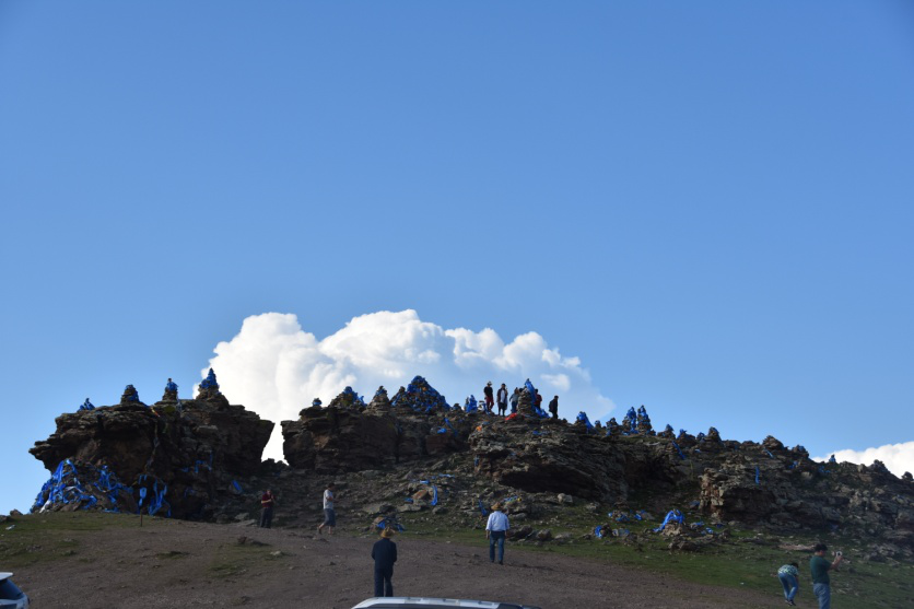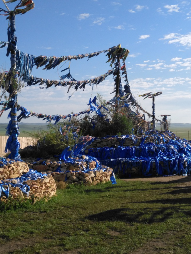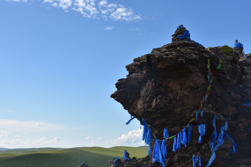 到了草原,當(dāng)然要聽一聽敖包相會的故事。喝一碗迎賓酒后,圍著敖包轉(zhuǎn)三圈,許個心愿,再扔個石頭祭敖包。