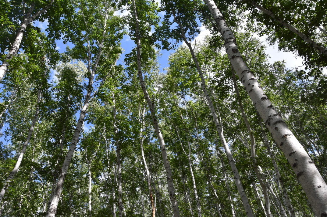 成片的白樺林,斑駁的白樹皮。有人說,樹皮上一塊一塊的黑圈是美麗的姑娘的眼睛,她在眺望著遠(yuǎn)方,期盼著戰(zhàn)場上的愛人能早日歸來。美麗的傳說,讓人想起樸樹那首膾灸人口的歌:《白樺樹》。