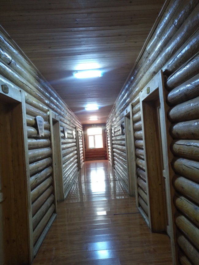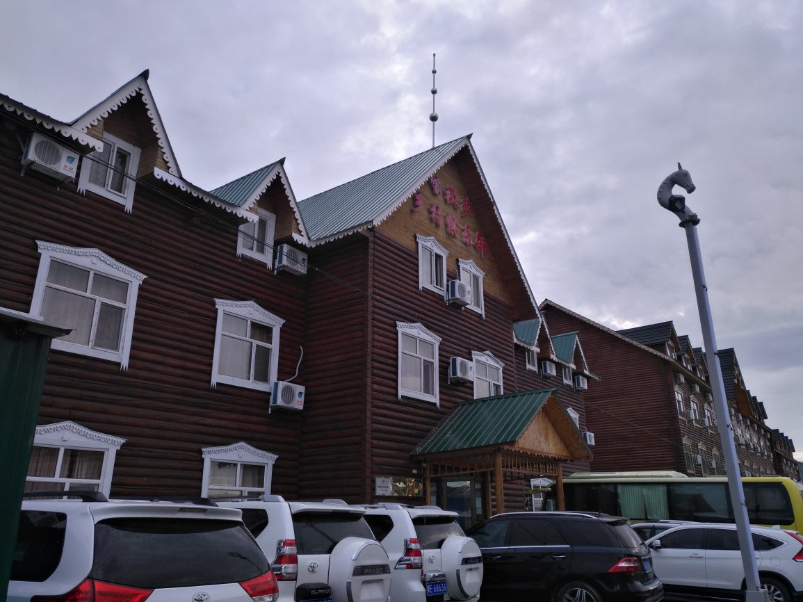 抵達極具異域風(fēng)情的室韋小鎮(zhèn)。這天入住的酒店樣子有點奇怪:全木制結(jié)構(gòu)的“木刻楞”房子,看樣子很環(huán)保;唯一不足的就是隔音效果不太好,鄰間用水的嘩嘩聲聽得一清二楚。晚上會不會再有被呼嚕聲吵醒的問題,我著實有點擔(dān)憂。