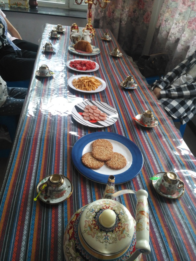 游覽完濕地公園,我們?nèi)グ菰L一位俄羅斯族大媽的家,品嘗一下俄式的美食,聽大媽給我們用俄語深情的演繹一首喀秋莎。