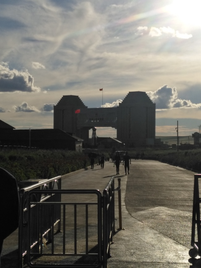 離的太遠(yuǎn),又是背光,照得不清楚,放大了看,才能隱隱約地看到“中華人民共和國”的字樣。還是在另外一個“北國第一門”來個合影好了。
